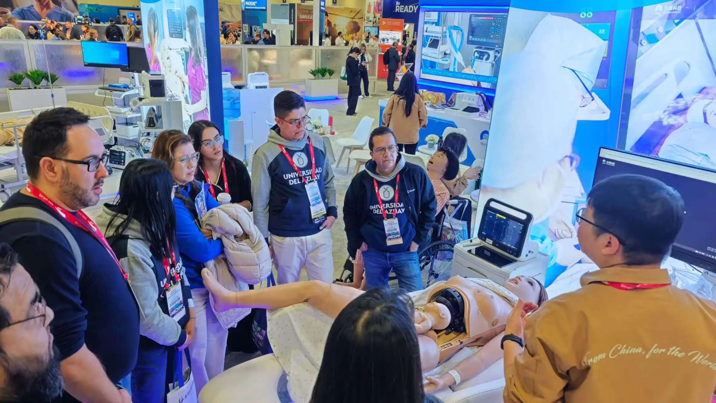 WUKONG-Multifunction Patient Simulator made his charming debut, capturing the attention of the entire hall and attracting a large number of visitors to gather and explore. Additionally, NUWA™-Birthing Simulator drew crowds with her highly precise simulation of the entire birthing process and dynamic feedback powered by physiological-driven algorithms.