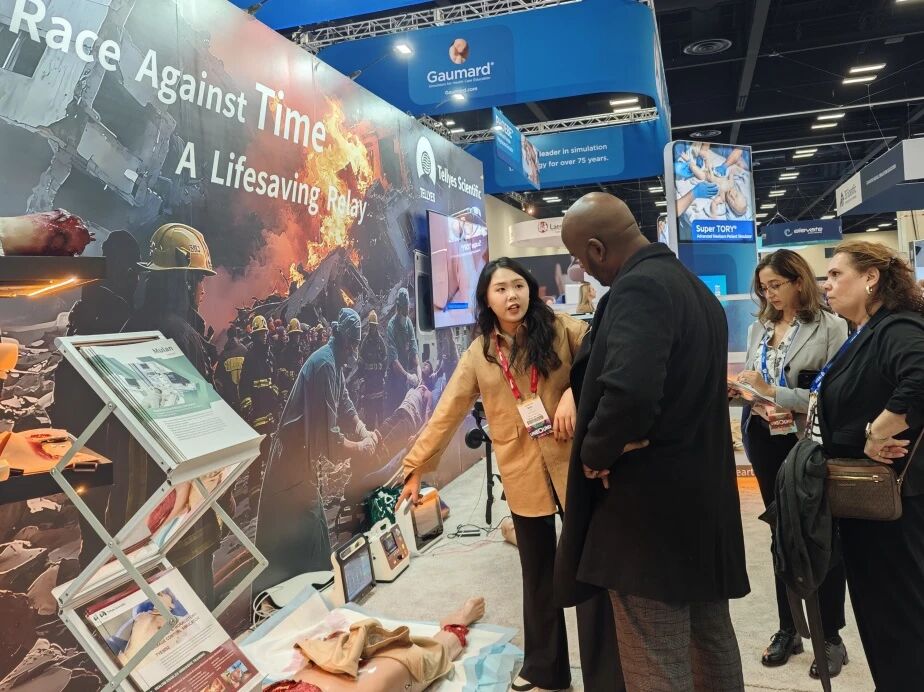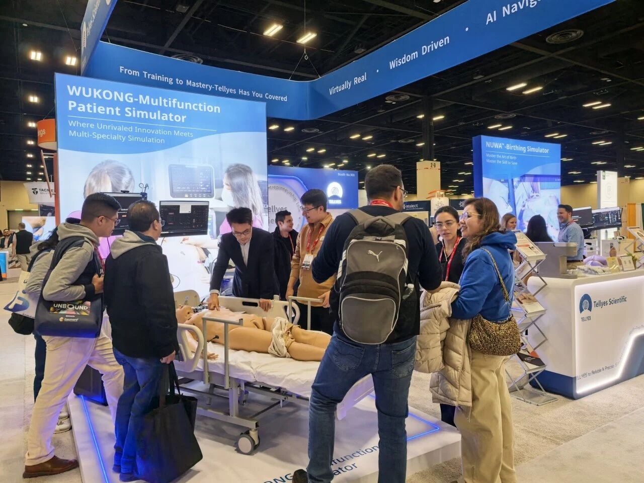 Today, our booth attracted hundreds of visitors from all over the world, who were deeply impressed by high-fidelity simulators such as NUWA™-Birthing Simulator, WUKONG-Multifunction Patient Simulator, and MARS. Many clients expressed varying levels of interest in collaboration, engaging in improvised business discussions and brainstorming sessions with Tellyes team.