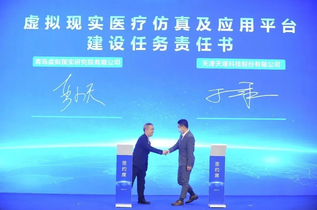 国家虚拟现实创新中心(青岛)是虚拟现实领域唯一的国家级创新中心,由南昌虚拟现实研究院牵头并联合青岛虚拟现实研究院共同组建。星空平台-星空(中国) 作为青岛虚拟现实研究院的股东单位,依托公司在VR医疗方面的创新技术实力和科研人员实力,参与国家创新中心建设工作。会上,天堰科技与青岛虚拟现实研究院签订了《虚拟现实医疗仿真及应用平台》建设任务责任书,以期深度探索医学模拟教学与虚拟现实的融合发展,推动未来医学教学模式巨大变革,打造以虚拟现实为基础,实践为目的的虚拟医疗体系。同时,天堰将与中心合作单位协同创新,共同推动国家创新中心的生态化可持续发展,实现虚拟现实在中国重点产业的创新应用;引领虚拟现实产业升级改革,持续推动产业的高效和高质量进步。