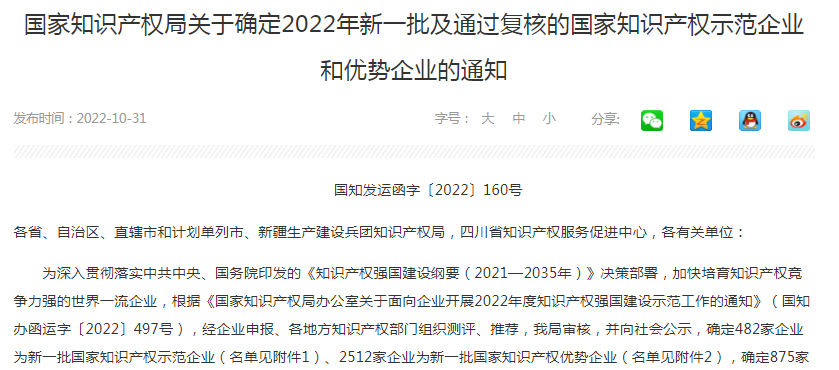 近日,国家知识产权局发布了新一批国家知识产权示范企业和优势企业名单,星空平台-星空(中国) 成功被评为新一批国家知识产权示范企业,这是自天堰被评为全国企事业知识产权试点单位、全国知识产权优势企业、全国版权示范单位等称号以来,再次获得国家级荣誉。