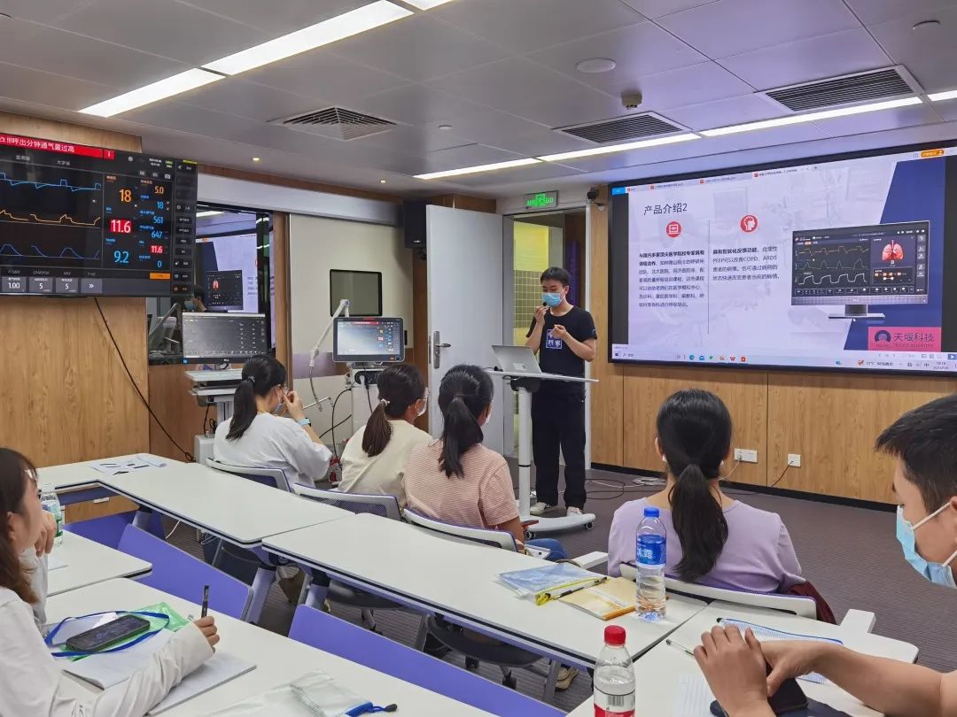 在“E学课程-机械通气实战训练营”即将结束时,天堰科技的产品经理向会议专家和参会学员介绍了公司自主研发的“呼吸力学仿生综合训练系统”,取得了不错的反响,被许多学员赞誉为“国货之光”。