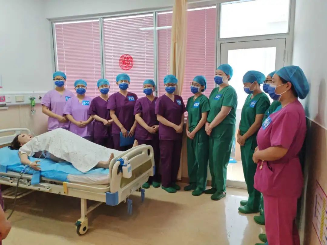 本次实训周演练的病例《羊水栓塞》,产妇38岁,经产妇,孕3产2存2,既往无高血压、糖尿病等慢性疾病史。无药物过敏史。孕早期建档,规律产检,无异常。昨日最后一次产检,超声估计胎儿体重3800g,头位,羊水指数20.2cm,其余产检指标均正常。2小时前见红伴不规律下腹痛,经急诊收入院待产。17:00:开始规律腹痛,内诊:宫颈近消,宫口容指,S-2,胎膜完整。疼痛评分5~6分,产妇要求行分娩镇痛。病例演练分为五个场景:第一场景胎心发生频发变异减速,进行宫内复苏;第二场景发生延长减速,胎心率降至65bpm,持续3分钟不恢复,立即启动即刻剖宫产;第三场景,剖宫产术中产妇出现呼吸困难、意识丧失,立即启动孕产妇复苏流程;第四场景,胎儿娩出后产妇发生大出血,进行产后出血的救治;第五场景,新生儿在出生后肤色苍白,经过清理呼吸道,刺激,新生儿无哭声,心率60次/分,进行新生儿复苏操作。